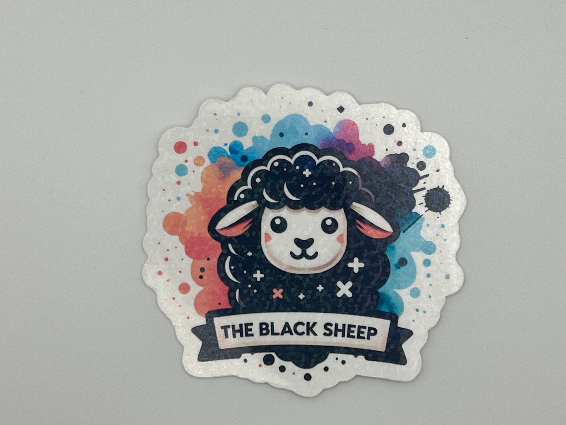 Showcase your uniqueness with The Black Sheep Sticker. Its holographic design makes it stand out and its waterproof feature ensures durability. Perfect for personalizing your belongings and expressing your individuality.